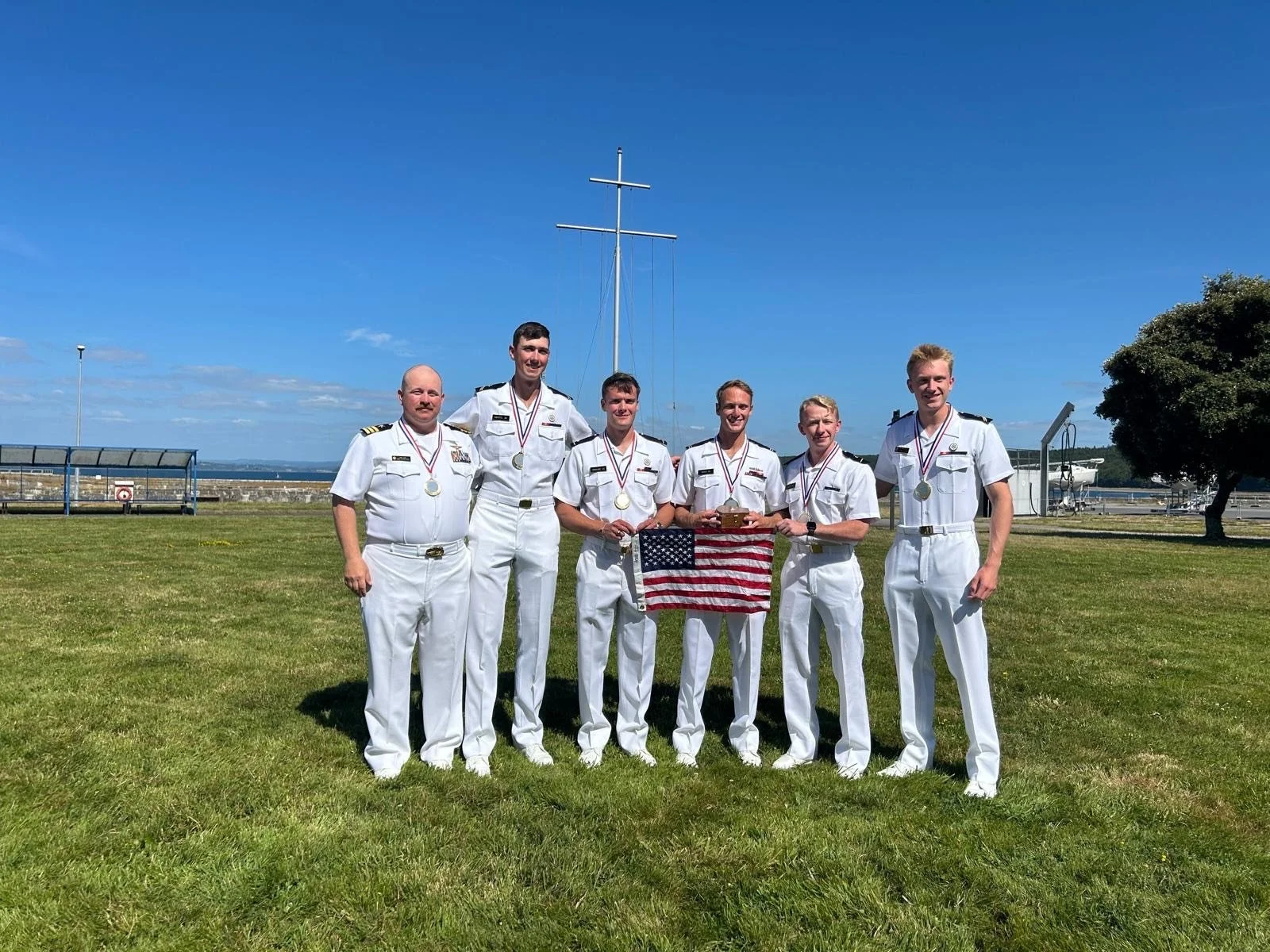 Competing in an 11-boat fleet, the Midshipmen won five of the eight races to finish first overall aboard TITAN.